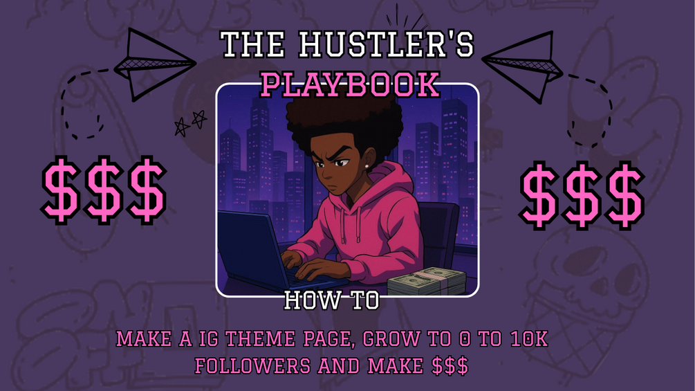 The Hustler’s Playbook is your step-by-step guide to building a Instagram business page, growing it to 10K followers, and turning it into a money-making machine. You’ll get MY AI tools I use,AI prompt for images and Canva templates, growth hacks, and my personal strategies to build, brand, and earn weather pushing your business or making a page like mine. All the best Fam.